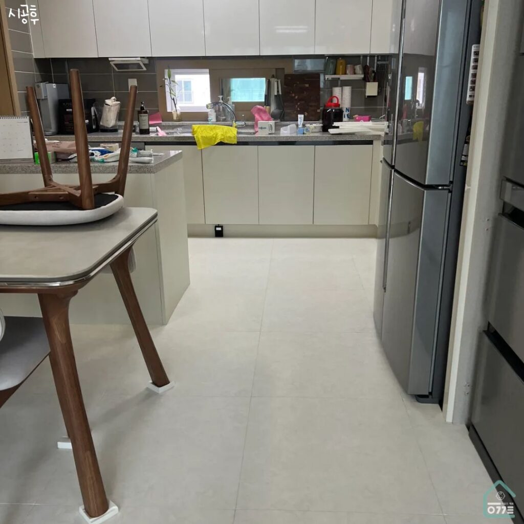 | 지역 : 광주 북구 고운하이플러스 아파트 평형 : 34평 확장형 시공범위 : 거실, 복도, 주방 시공색상 : 화이트마블 |