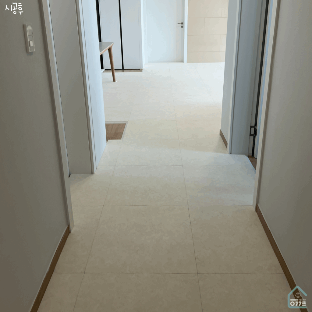 지역 : 광주 북구 호반베르디움 1차 평형 : 33평 확장형 시공범위 : 거실, 복도, 주방 시공색상 : 화이트마블 |