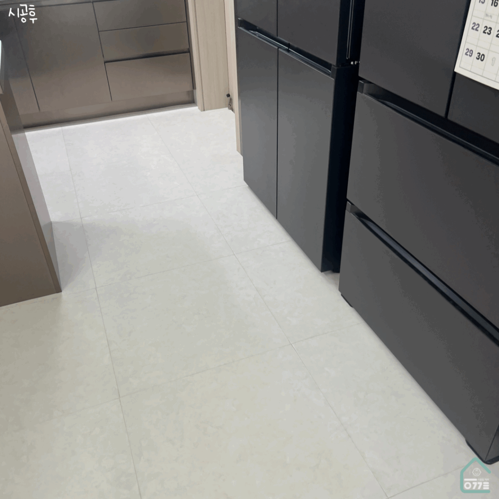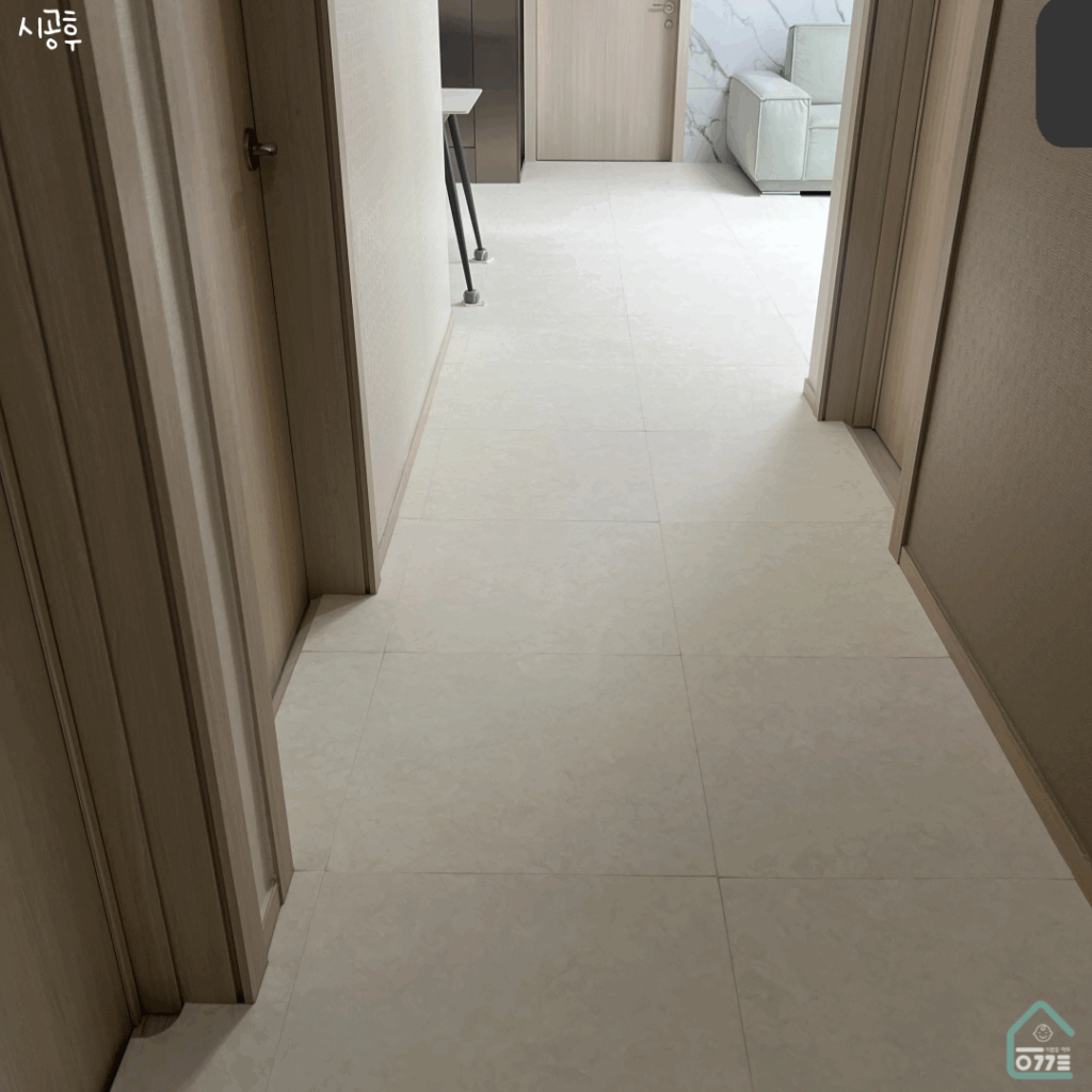| 지역 : 전남 순천시 조례2차 골드클래스시그니처 평형 : 34평 확장형 시공범위 : 거실, 복도, 주방 시공색상 : 화이트마블 |